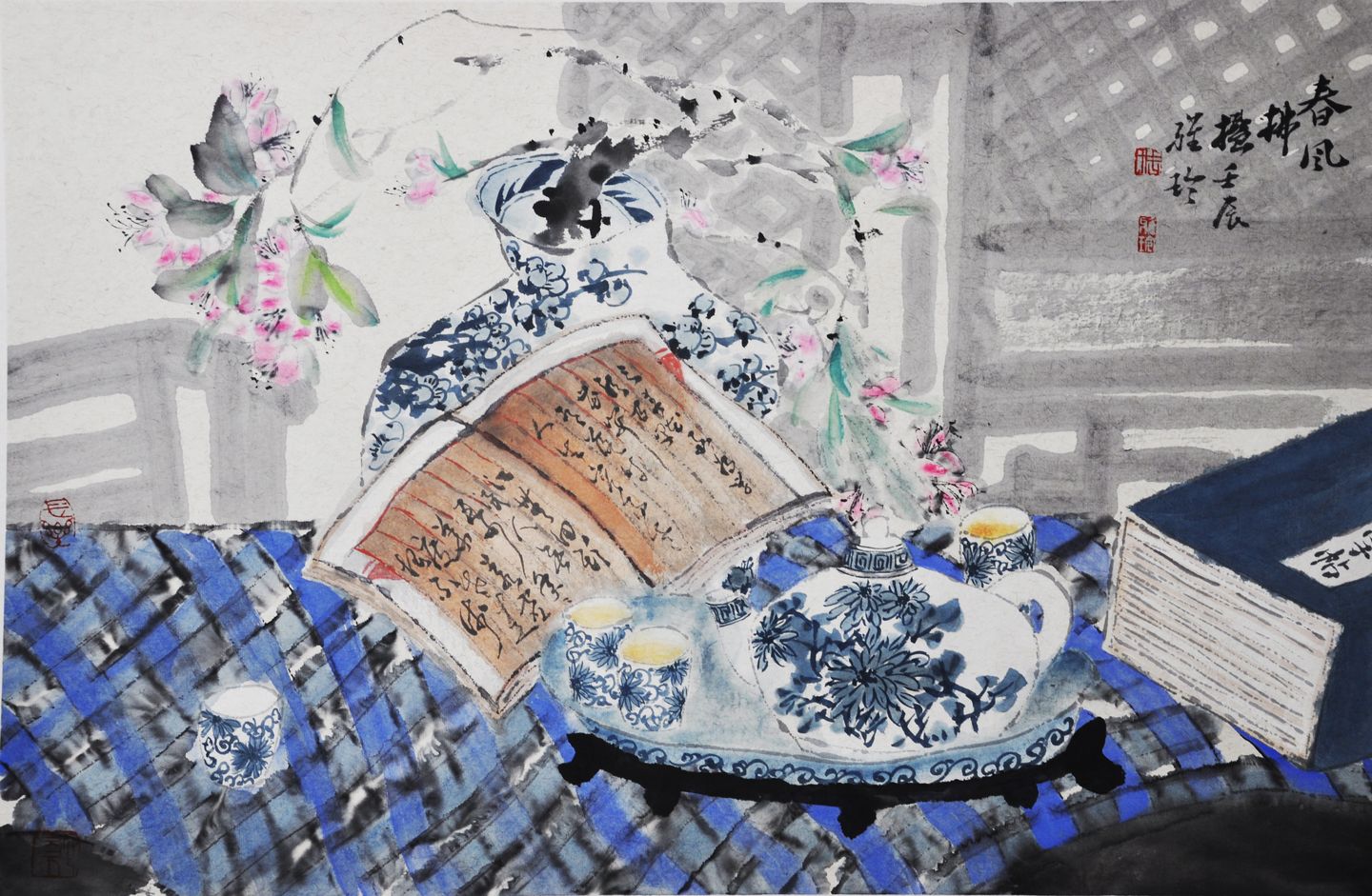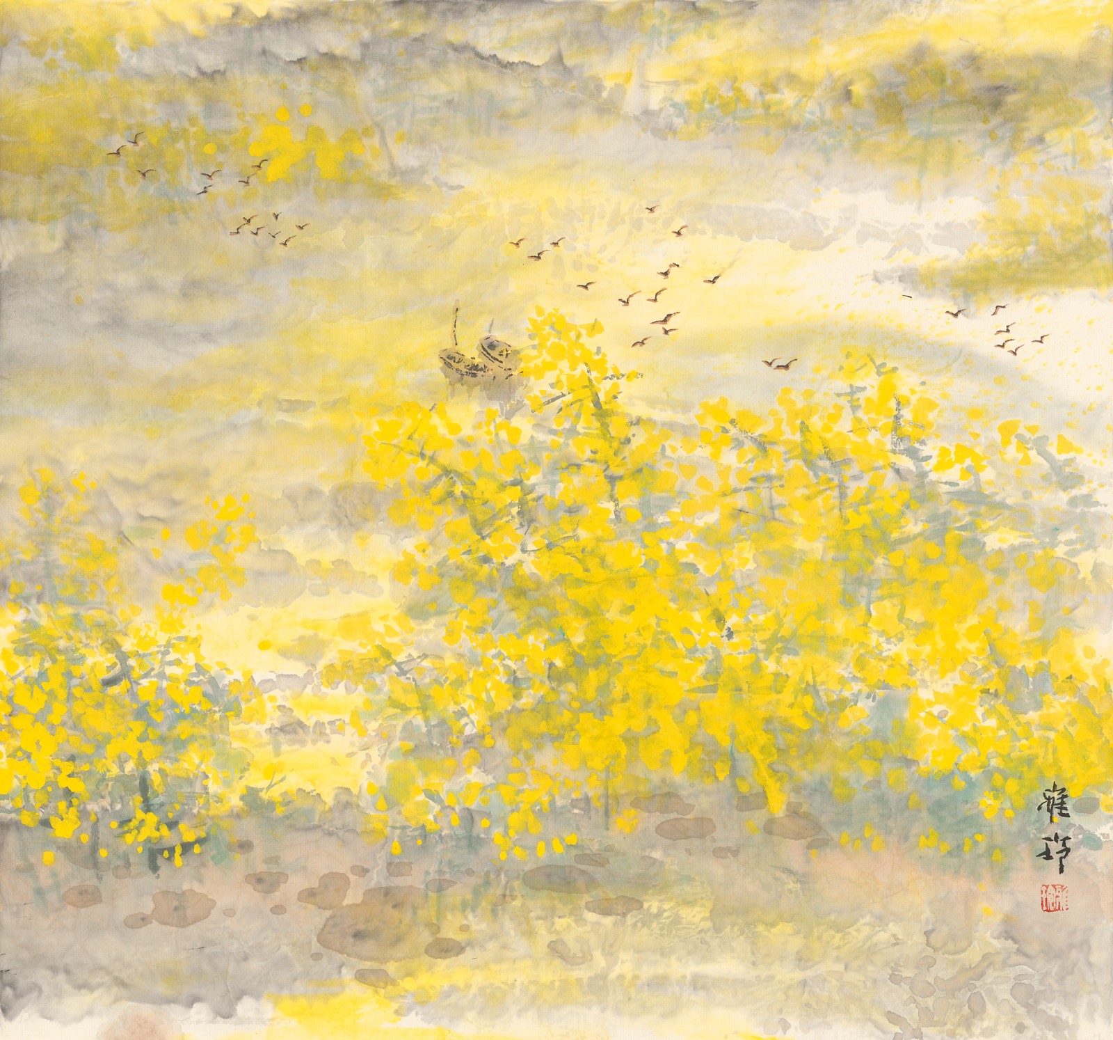 将中国画的古典意境与西方绘画的光色造型相结合,把草木、禽鸟连同居室内的器物、摆设统一升华在唯美的理想中,周雅玲以饱含激情的笔墨语言构建了自己别样的花鸟画微观世界,从而完成了其精神上“诗意的栖居”。其作品涌动着一股雅洁清逸的书卷气和濯洗俗尘的品质,呈现出唐诗般的高致、精微和宋瓷般的细腻、典雅,展示了其对花鸟画古典传统虔诚的精神寻根和试图建立其现代样式的不息探索。
