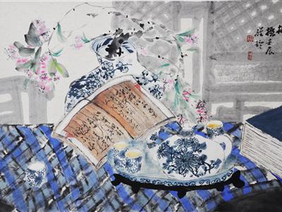 2014年中央电视台“艺术与投资”频道播出:周雅玲国画《青花雅韵 栖居诗境》;