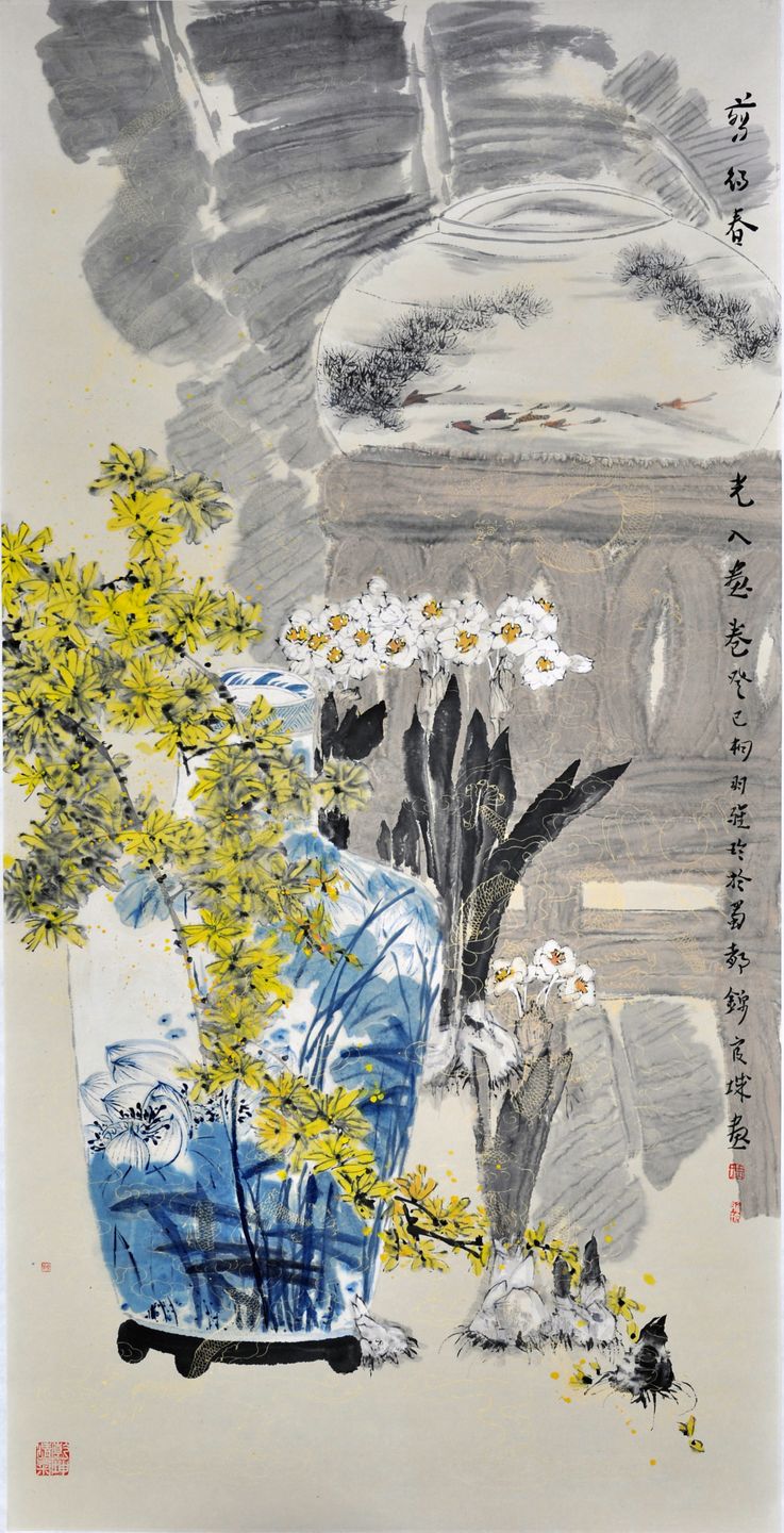 画家的创作从某种意义上讲,是一种神游,神游的那个世界,就是艺术世界。不过有的画家一辈子游的是别人的花园,也有人游的是自己的后花园,雅玲属于后者。它需要三者齐备,这三者是独具慧眼的胆识,精湛而又富有表现力的技巧,同时还有激情饱满又平淡自然的创作心态。雅玲在花鸟画技艺方面,有长达三十余年的苦练,既能画丈二、丈六大写意作品,又能画四尺、六尺工笔画,在色彩的冷暖浓淡,行笔的急缓粗细,构图的新奇和谐,是下了大功夫的。因此,她在饱满激情创作时,能驾驭自如,左右逢源,得心应手地一气呵成。拜读了她近年创作的数十件清供新作,是与自然艺术情感的坦荡交流,她赋予清供新的理念,新的生气,正形成新的形式与语境,这是一座温馨又绚丽的后花园。透过那一件件呕心沥血的作品,我们可以感悟到作者的大度、智慧、从容与自信。看她的画真是一种享受!谢谢了,花园的主人!