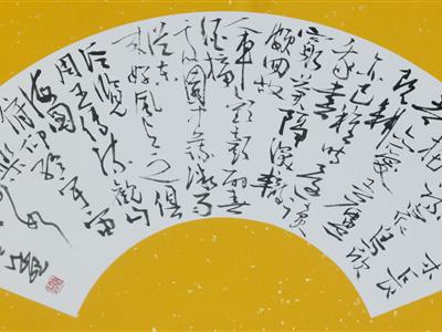 陶渊明诗《读山海经》行草书扇面 孟夏草朩长