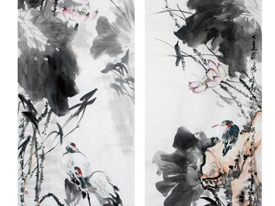 荷花四条屏